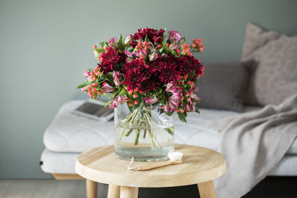 Det går mot høst og sakte men sikkert flytter vi innendørs. Kveldene blir kaldere og mørkere og vi er klare for innekos. Hva er vel mer hyggelig enn å pynte opp med friske blomster? Trenden nå er at bukettene skal være ville og vakre. Det kan være en fin miks av forskjellige farger og sorter.